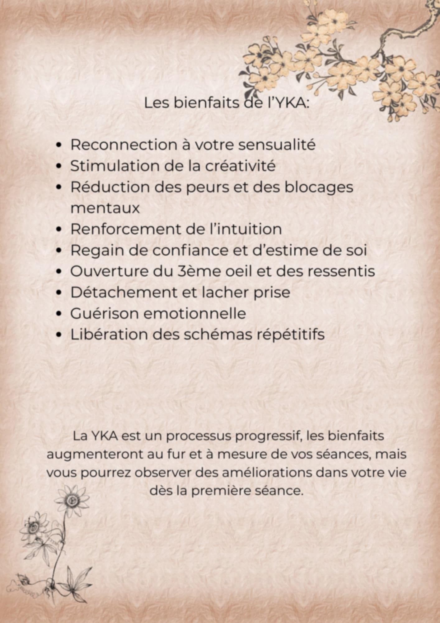 En septembre 2024, après une séance YKA, j'ai réalisé que je voulais être formatrice. Suivre ce cursus avait un réel sens pour moi, je voulais soulager des nœuds émotionnels comme on a pu le faire pour moi.